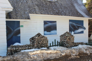 After much lag time we have added a little something to our family house Windward for the winter months.  For those of you who follow this blog, and don’t know Alan’s brother Tom – he is a man of many talents, not the least of which is that he is a very creative artist and carpenter. He combined these two skills to create an amazing mural/triptych with a whale. It is absolutely stunning and will now grace our house each winter to jazz up the scene.